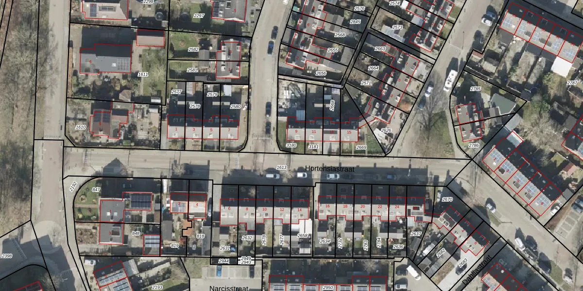 Gebruik de zoekbalk of klik op een perceel om informatie over het perceel te bekijken.