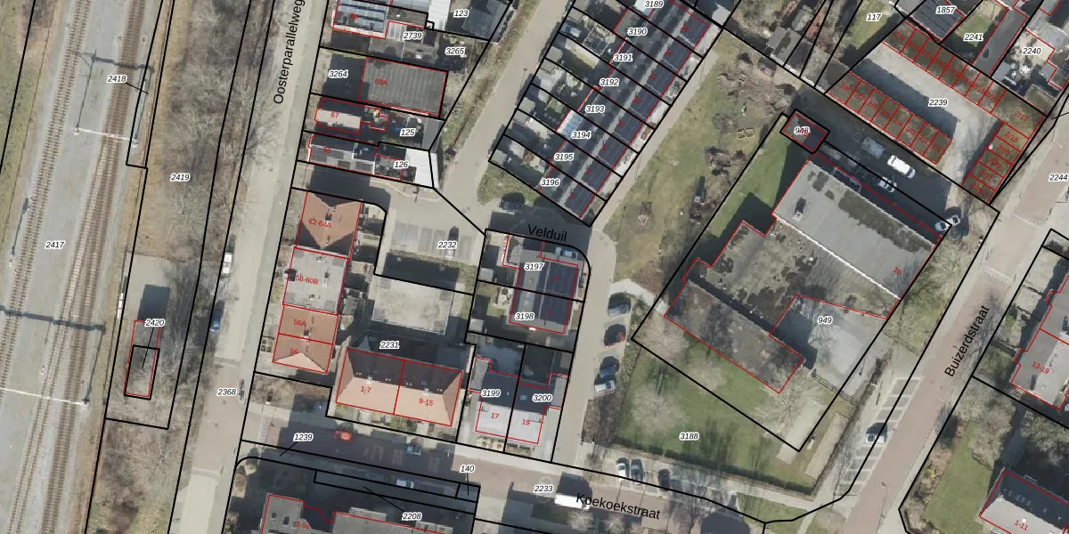 Gebruik de zoekbalk of klik op een perceel om informatie over het perceel te bekijken.