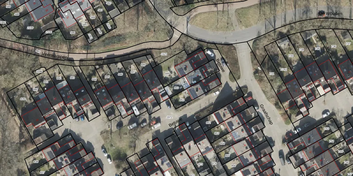 Gebruik de zoekbalk of klik op een perceel om informatie over het perceel te bekijken.