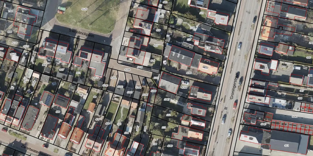 Gebruik de zoekbalk of klik op een perceel om informatie over het perceel te bekijken.