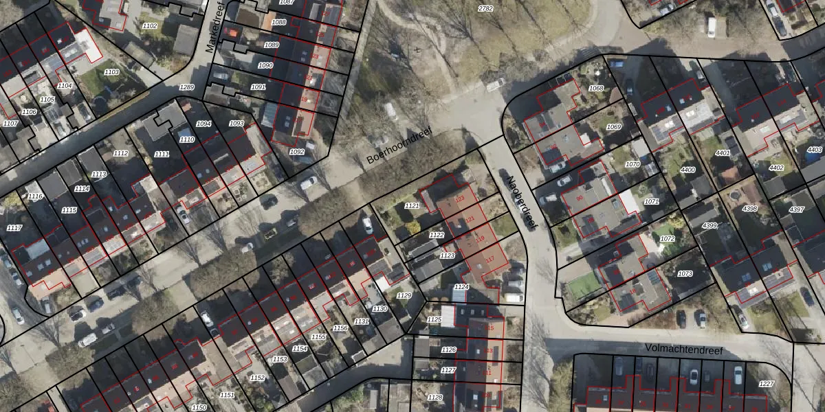Gebruik de zoekbalk of klik op een perceel om informatie over het perceel te bekijken.