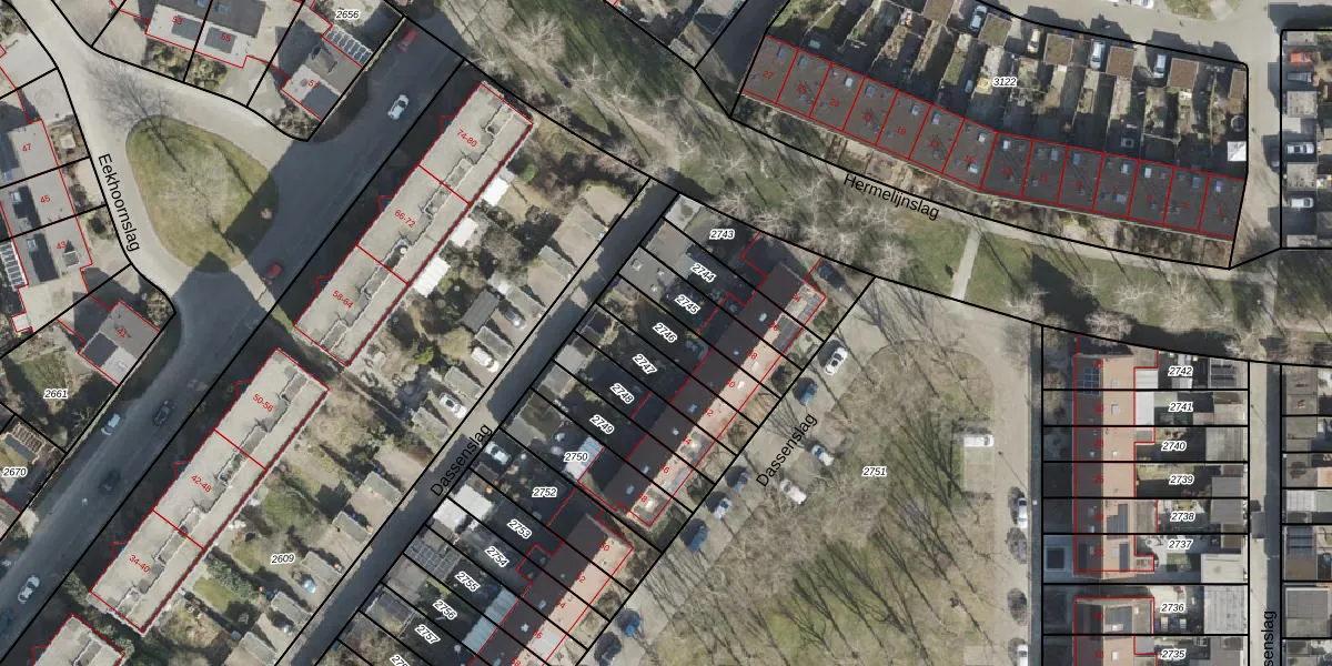 Gebruik de zoekbalk of klik op een perceel om informatie over het perceel te bekijken.