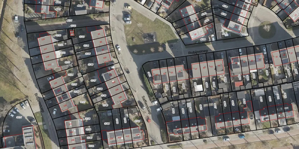 Gebruik de zoekbalk of klik op een perceel om informatie over het perceel te bekijken.