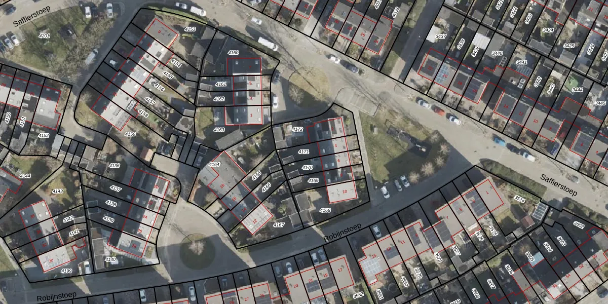 Gebruik de zoekbalk of klik op een perceel om informatie over het perceel te bekijken.