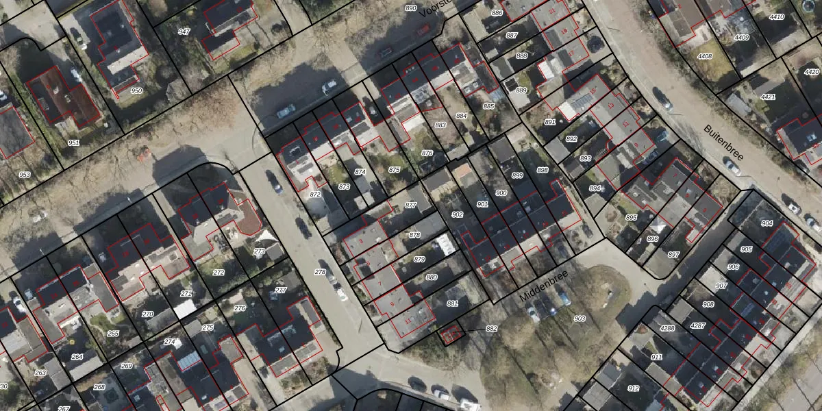 Gebruik de zoekbalk of klik op een perceel om informatie over het perceel te bekijken.