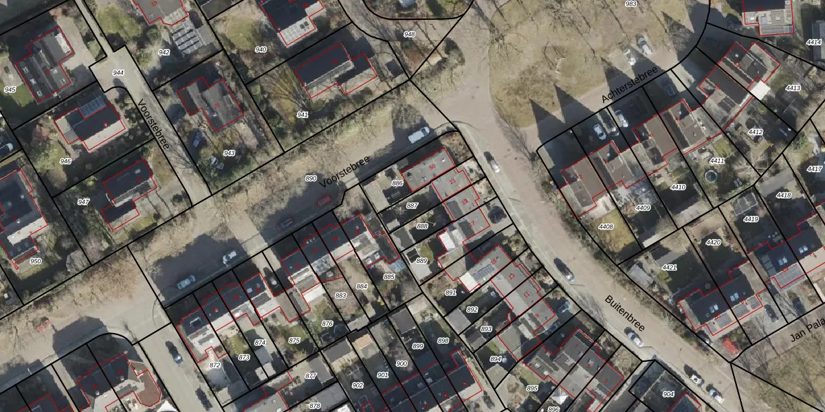 Gebruik de zoekbalk of klik op een perceel om informatie over het perceel te bekijken.