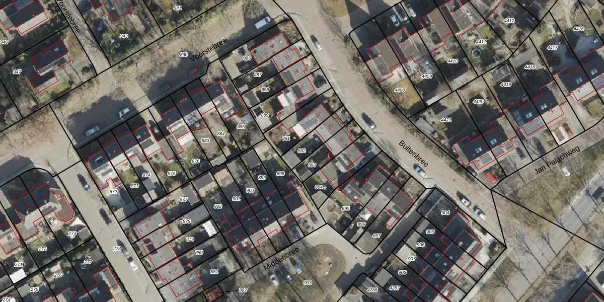 Gebruik de zoekbalk of klik op een perceel om informatie over het perceel te bekijken.