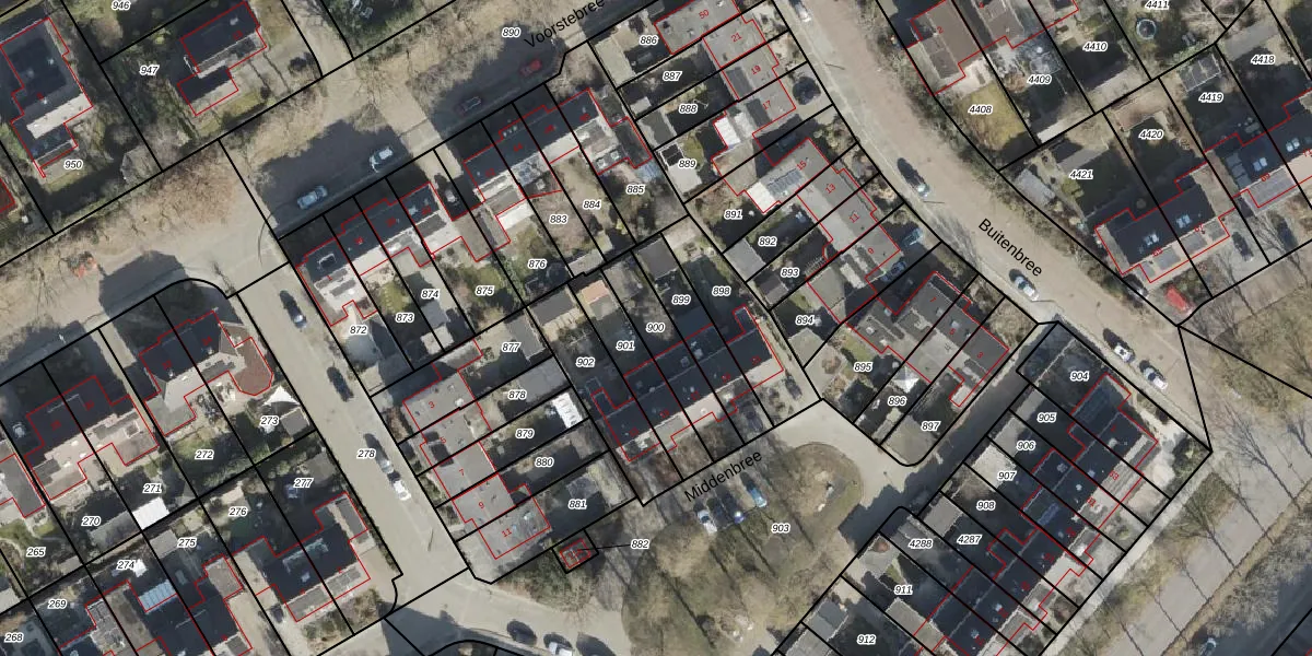 Gebruik de zoekbalk of klik op een perceel om informatie over het perceel te bekijken.