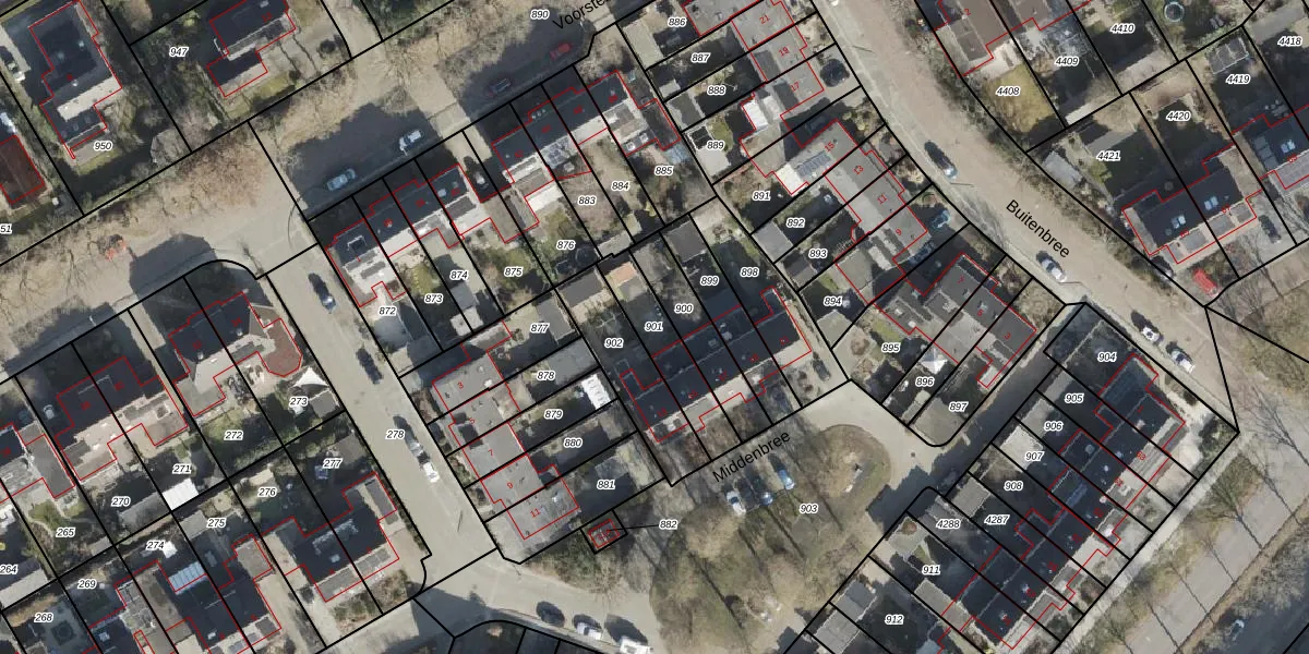Gebruik de zoekbalk of klik op een perceel om informatie over het perceel te bekijken.