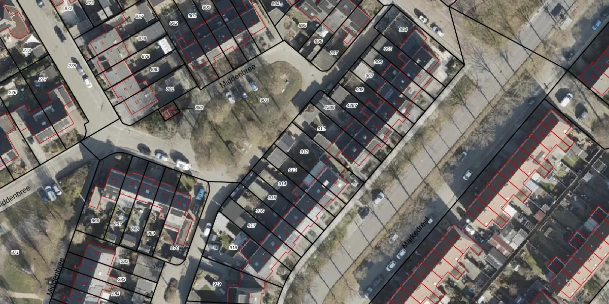 Gebruik de zoekbalk of klik op een perceel om informatie over het perceel te bekijken.