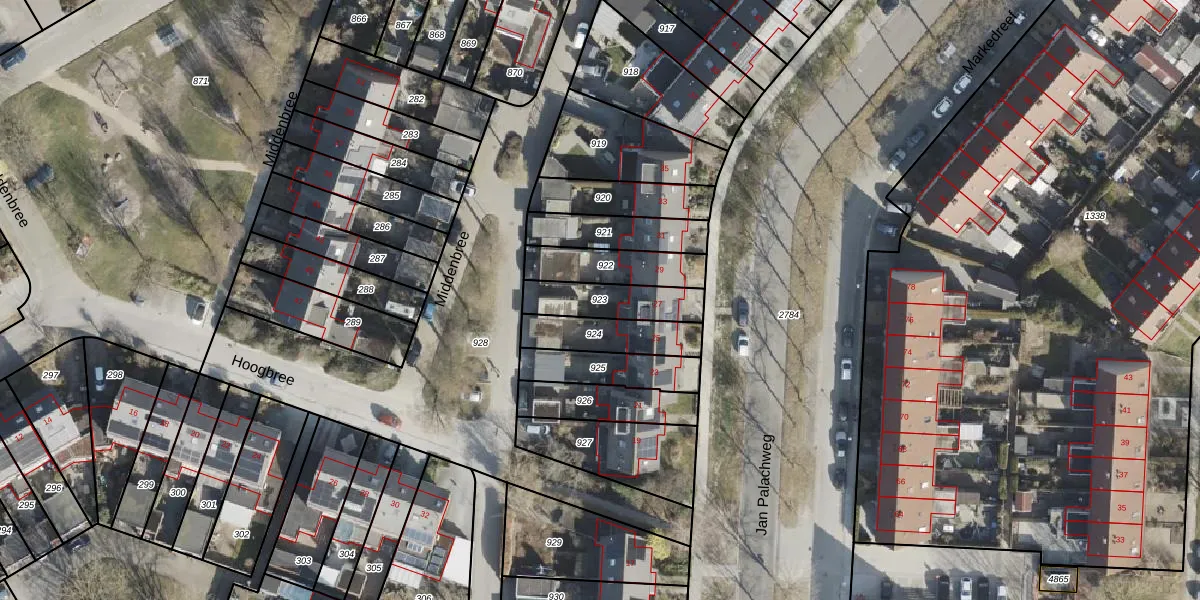 Gebruik de zoekbalk of klik op een perceel om informatie over het perceel te bekijken.