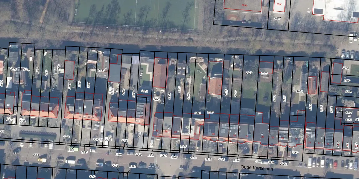 Gebruik de zoekbalk of klik op een perceel om informatie over het perceel te bekijken.