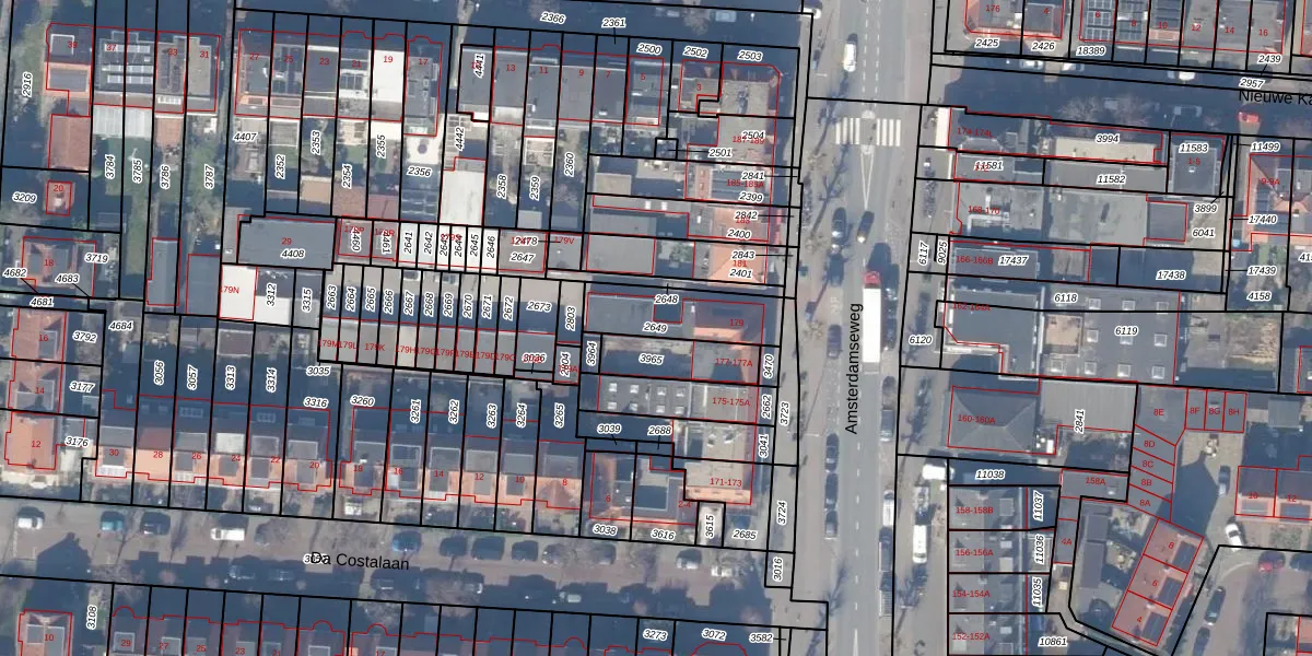 Gebruik de zoekbalk of klik op een perceel om informatie over het perceel te bekijken.
