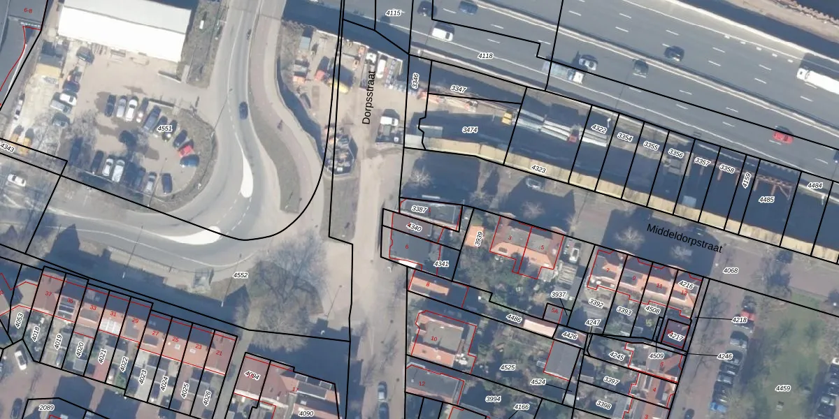 Gebruik de zoekbalk of klik op een perceel om informatie over het perceel te bekijken.