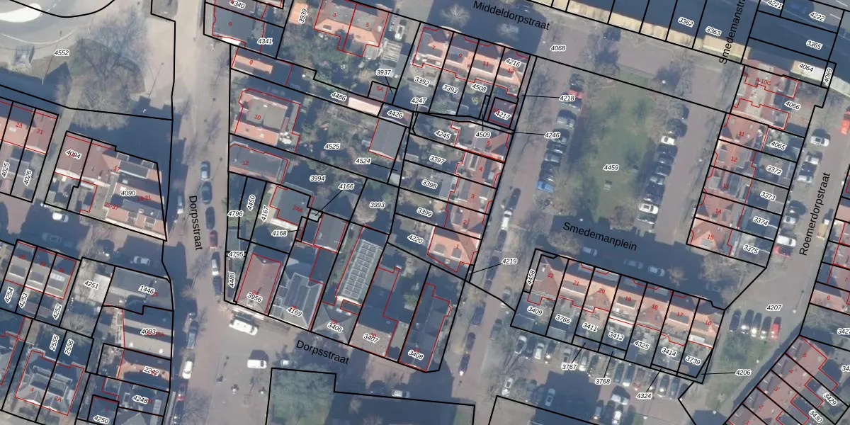 Gebruik de zoekbalk of klik op een perceel om informatie over het perceel te bekijken.
