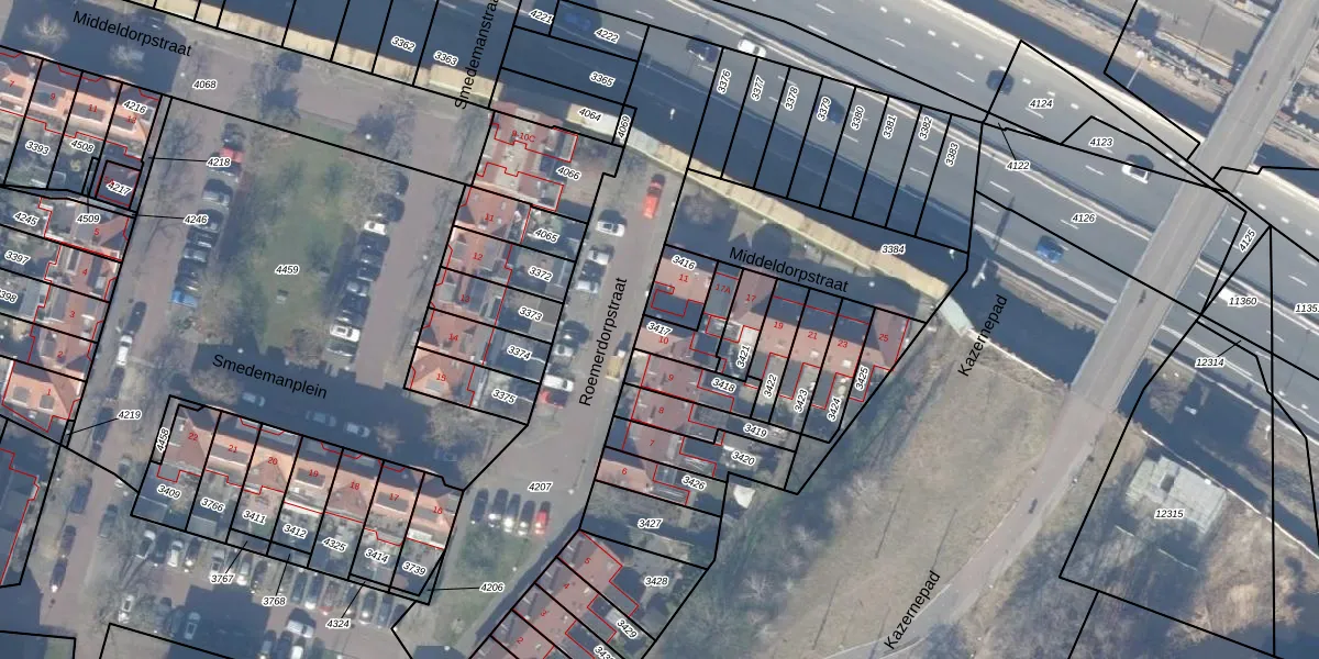 Gebruik de zoekbalk of klik op een perceel om informatie over het perceel te bekijken.