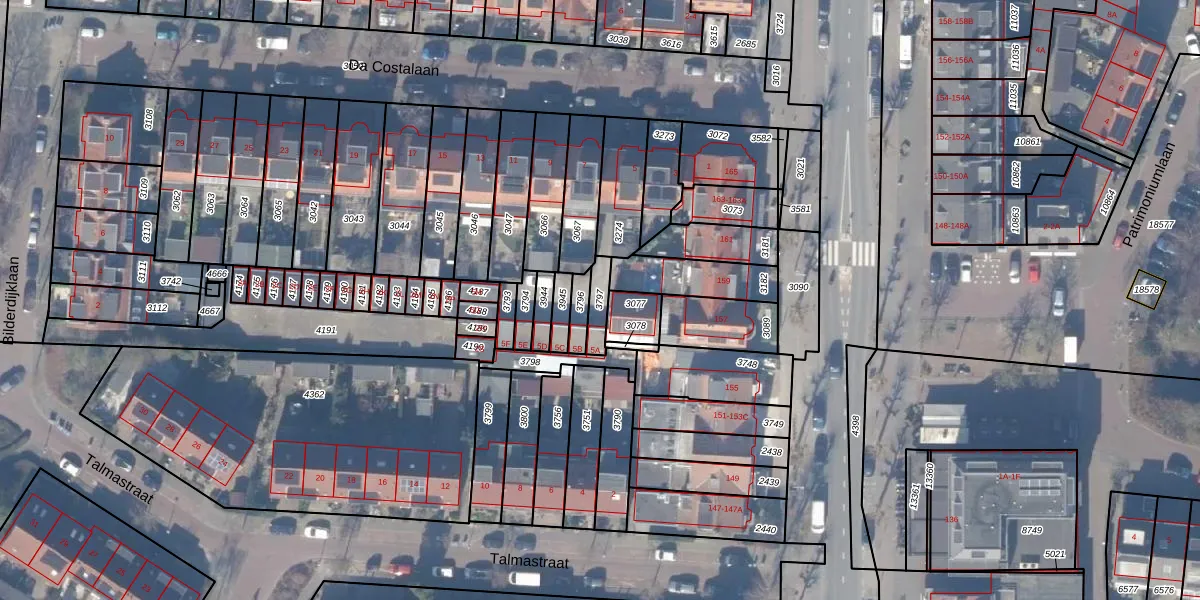 Gebruik de zoekbalk of klik op een perceel om informatie over het perceel te bekijken.