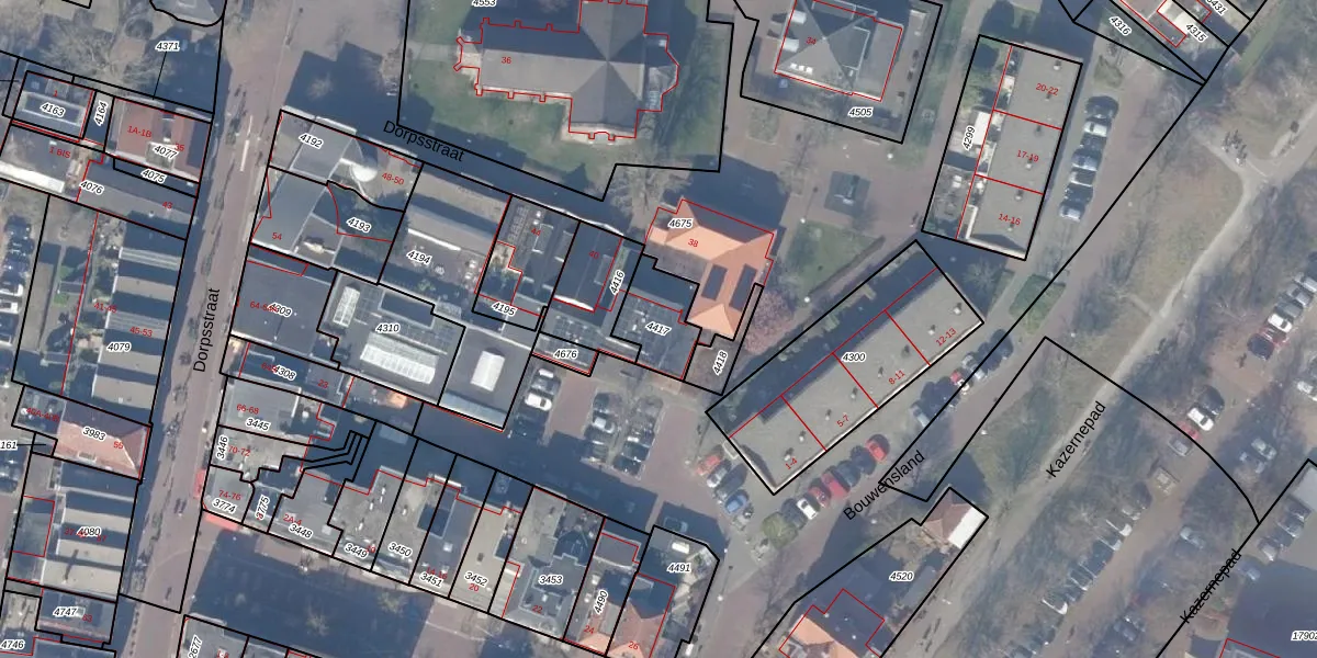 Gebruik de zoekbalk of klik op een perceel om informatie over het perceel te bekijken.