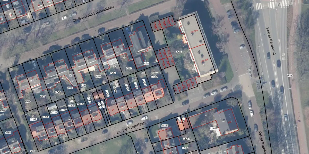Gebruik de zoekbalk of klik op een perceel om informatie over het perceel te bekijken.