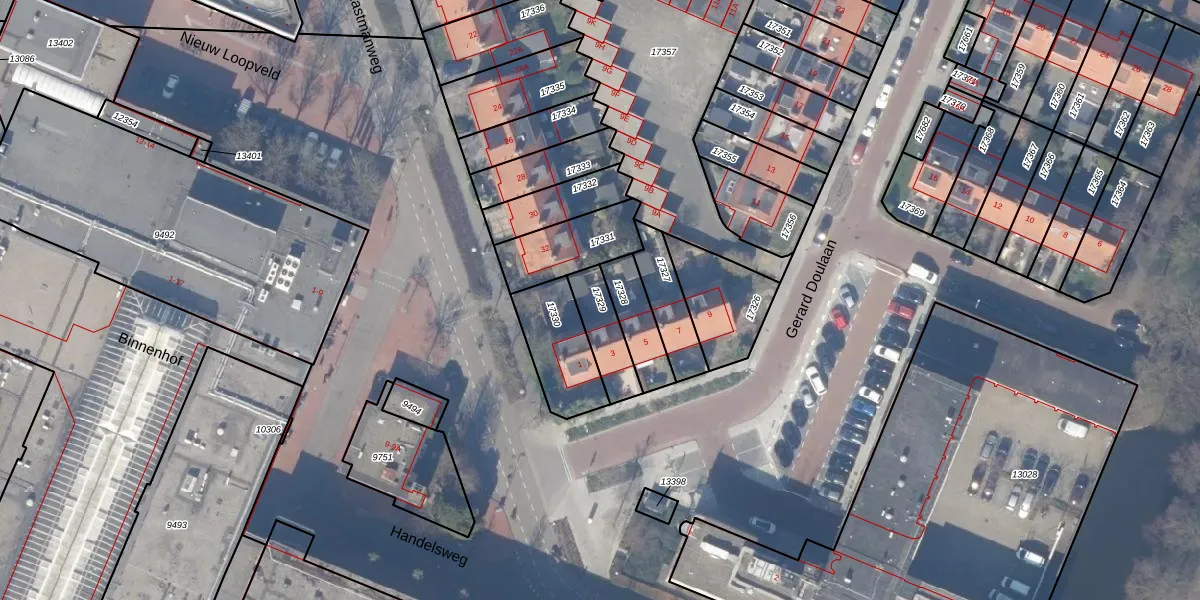 Gebruik de zoekbalk of klik op een perceel om informatie over het perceel te bekijken.
