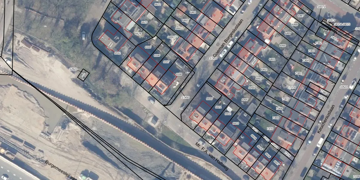 Gebruik de zoekbalk of klik op een perceel om informatie over het perceel te bekijken.