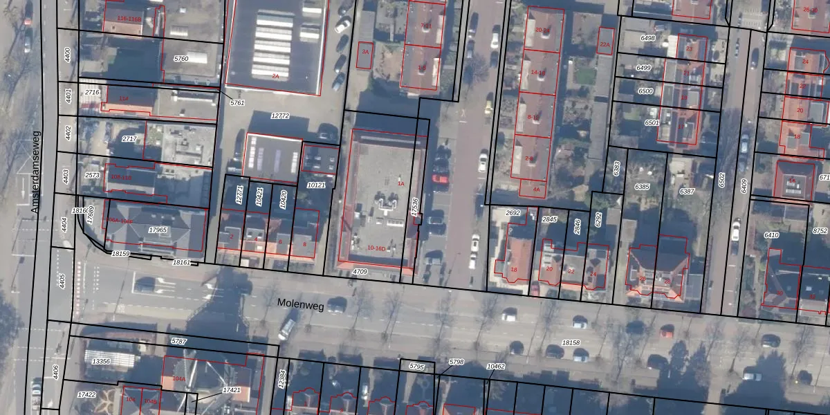Gebruik de zoekbalk of klik op een perceel om informatie over het perceel te bekijken.