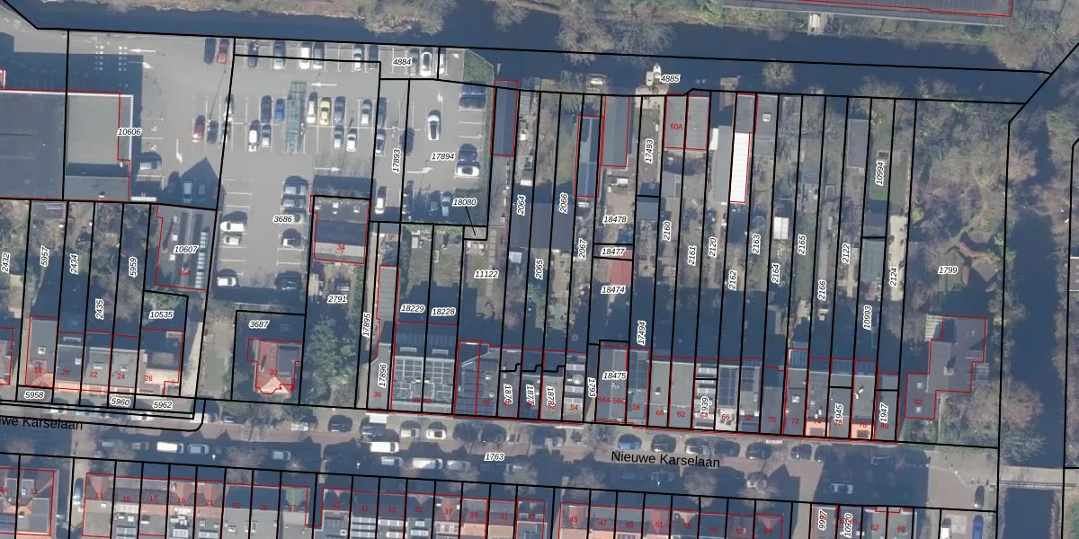 Gebruik de zoekbalk of klik op een perceel om informatie over het perceel te bekijken.