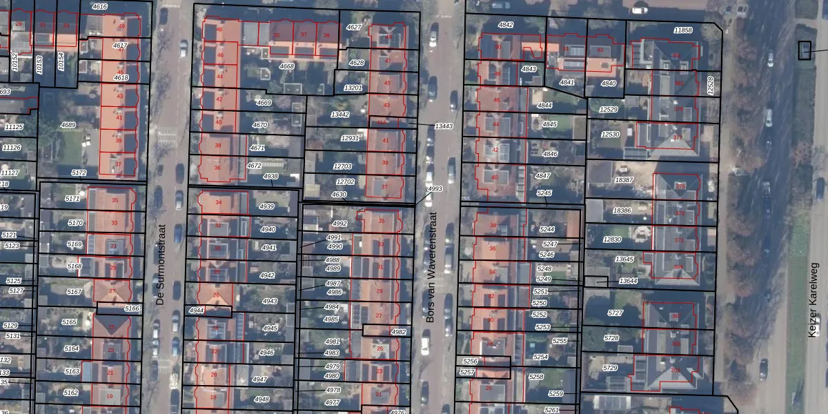Gebruik de zoekbalk of klik op een perceel om informatie over het perceel te bekijken.