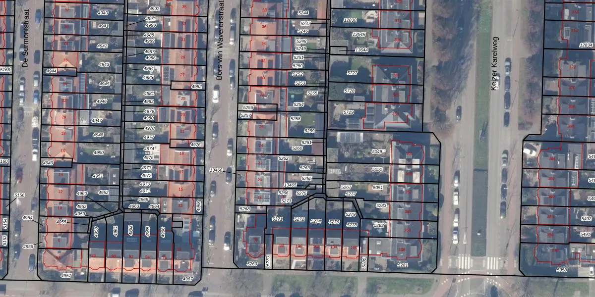 Gebruik de zoekbalk of klik op een perceel om informatie over het perceel te bekijken.