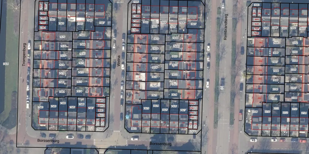 Gebruik de zoekbalk of klik op een perceel om informatie over het perceel te bekijken.