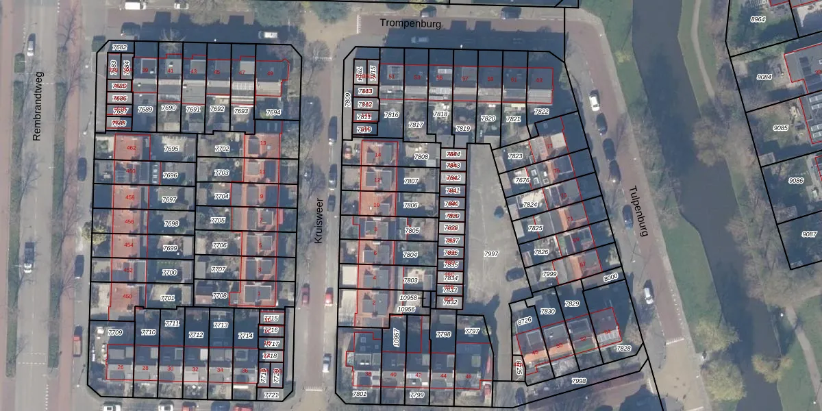 Gebruik de zoekbalk of klik op een perceel om informatie over het perceel te bekijken.