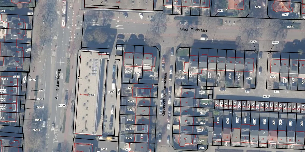 Gebruik de zoekbalk of klik op een perceel om informatie over het perceel te bekijken.