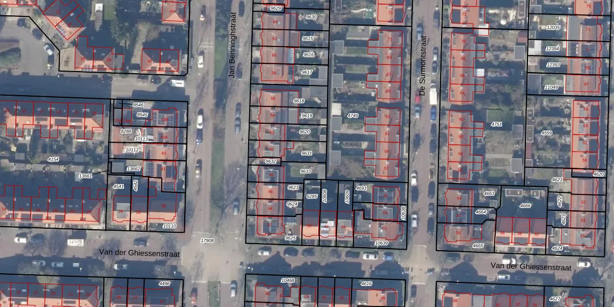 Gebruik de zoekbalk of klik op een perceel om informatie over het perceel te bekijken.