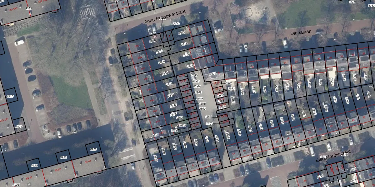 Gebruik de zoekbalk of klik op een perceel om informatie over het perceel te bekijken.