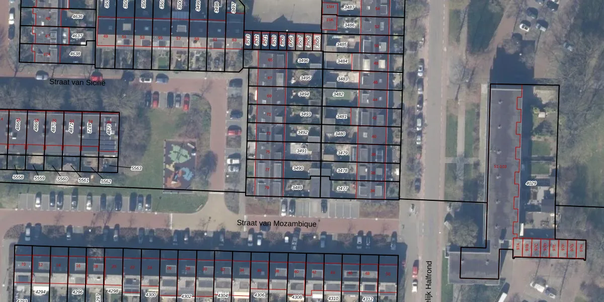 Gebruik de zoekbalk of klik op een perceel om informatie over het perceel te bekijken.