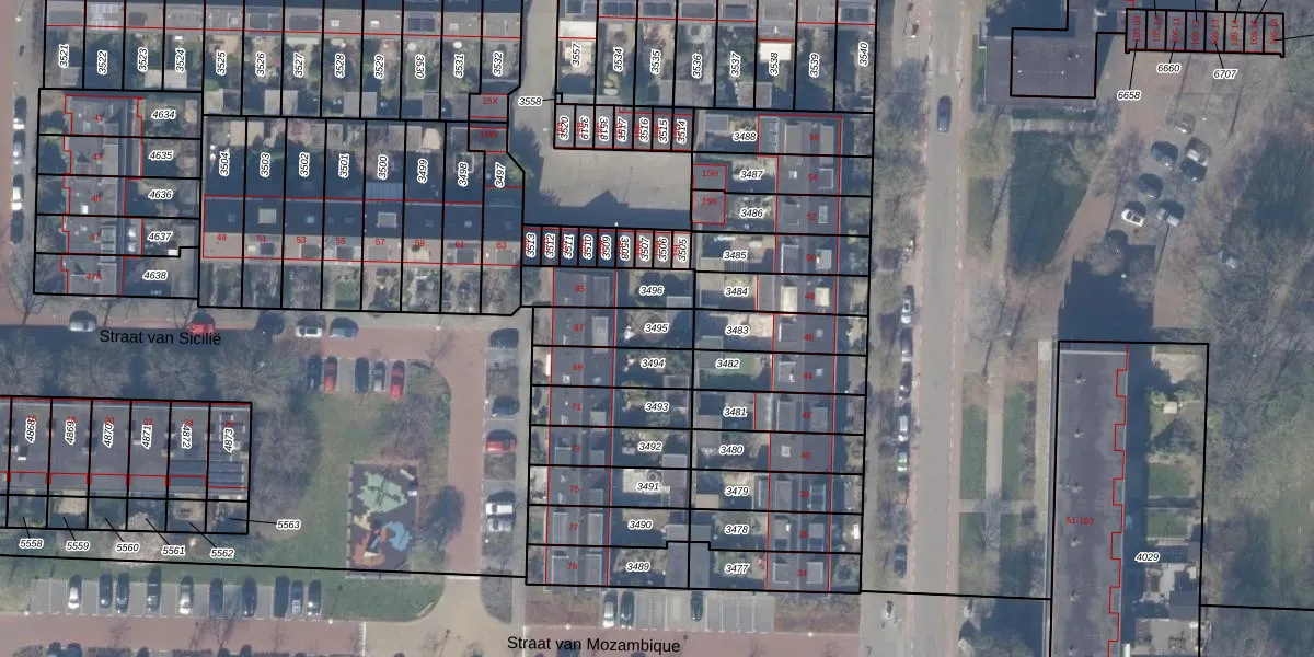 Gebruik de zoekbalk of klik op een perceel om informatie over het perceel te bekijken.