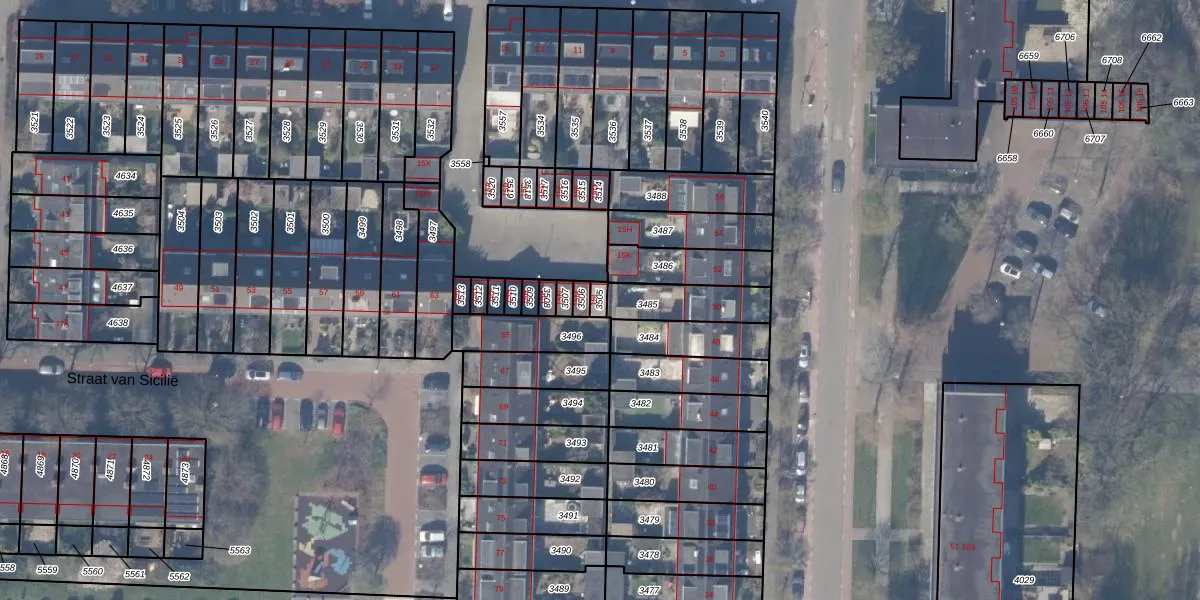Gebruik de zoekbalk of klik op een perceel om informatie over het perceel te bekijken.