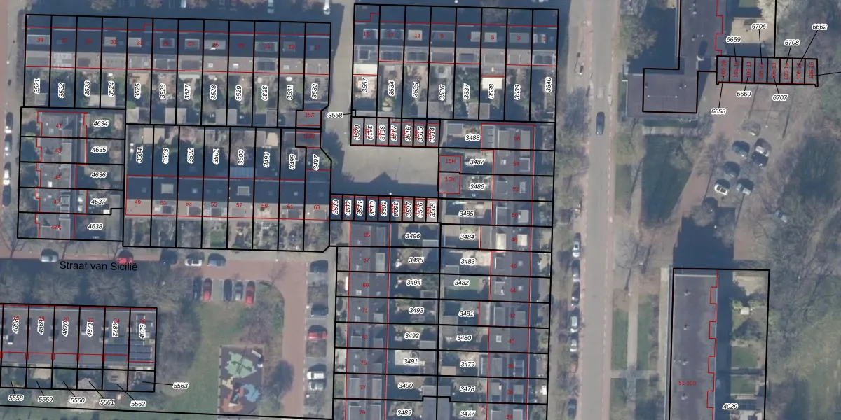 Gebruik de zoekbalk of klik op een perceel om informatie over het perceel te bekijken.