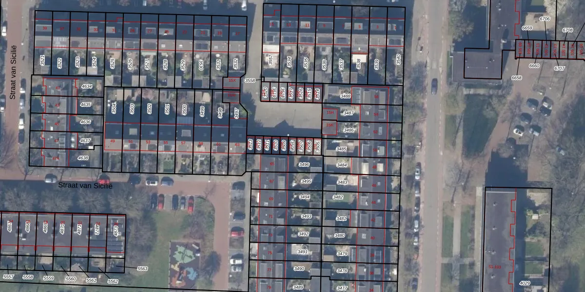 Gebruik de zoekbalk of klik op een perceel om informatie over het perceel te bekijken.