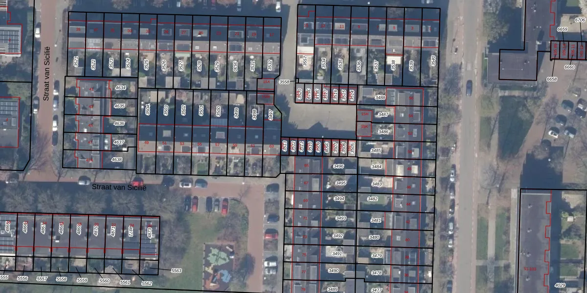 Gebruik de zoekbalk of klik op een perceel om informatie over het perceel te bekijken.