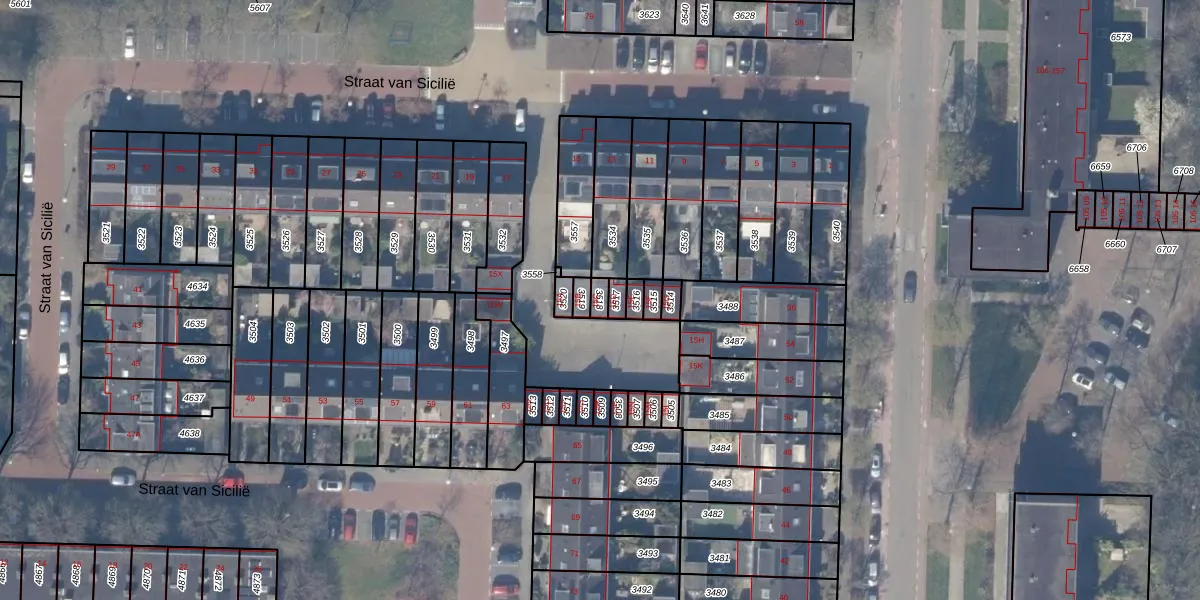Gebruik de zoekbalk of klik op een perceel om informatie over het perceel te bekijken.