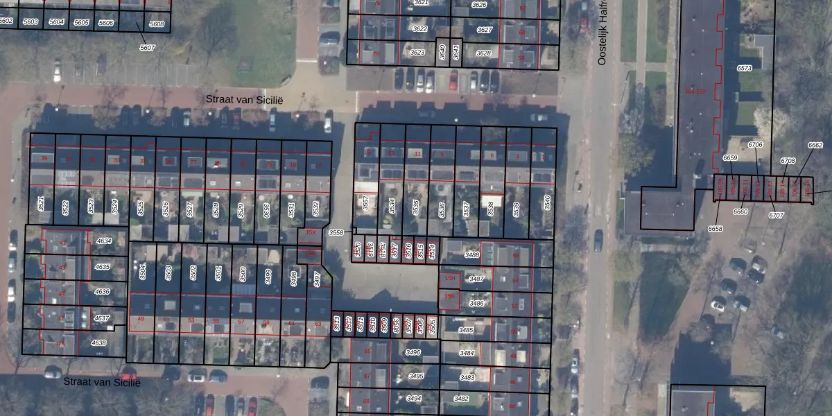 Gebruik de zoekbalk of klik op een perceel om informatie over het perceel te bekijken.