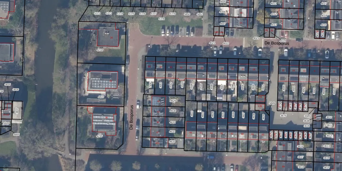 Gebruik de zoekbalk of klik op een perceel om informatie over het perceel te bekijken.