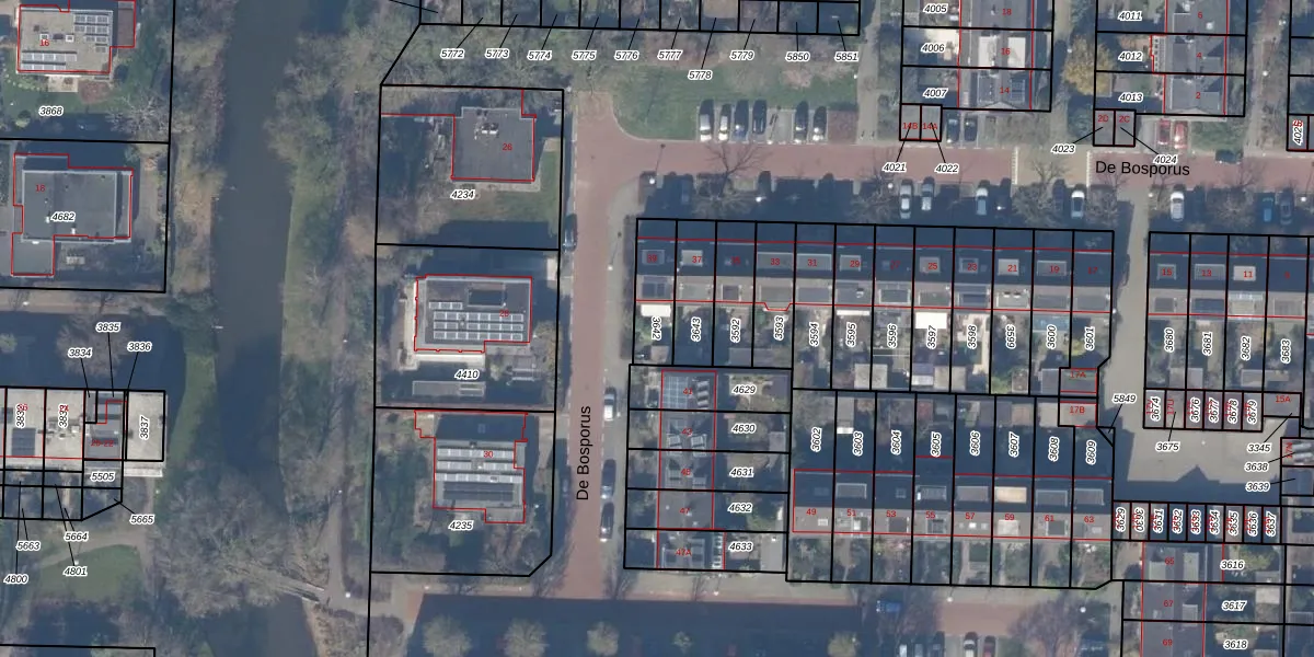 Gebruik de zoekbalk of klik op een perceel om informatie over het perceel te bekijken.