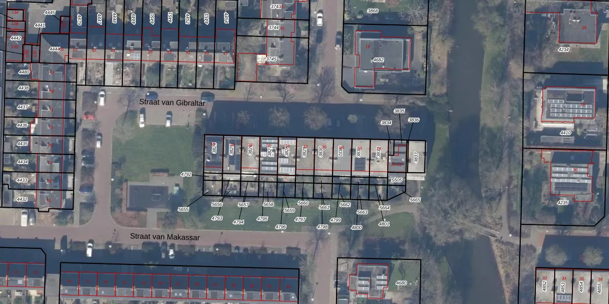 Gebruik de zoekbalk of klik op een perceel om informatie over het perceel te bekijken.