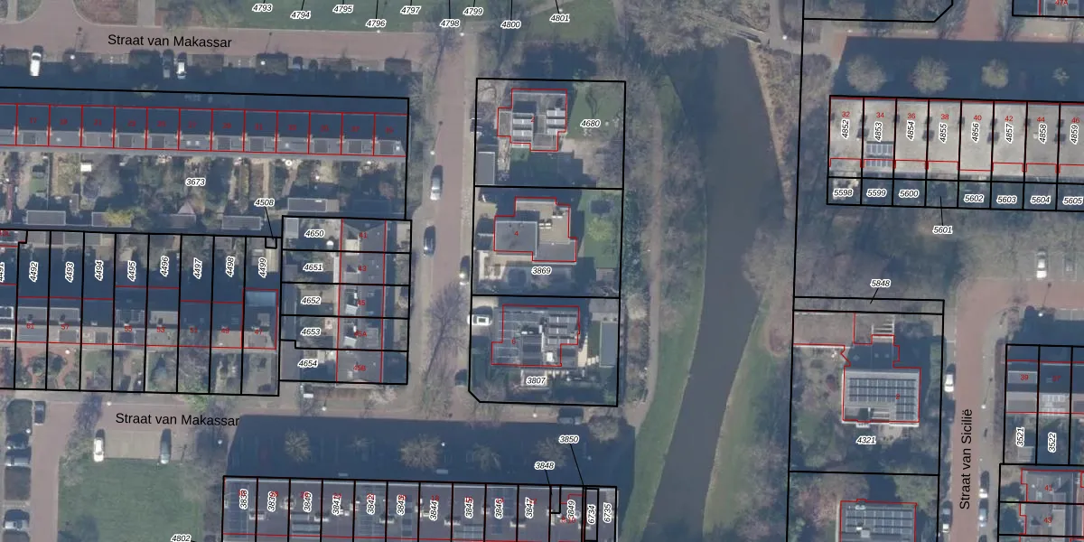 Gebruik de zoekbalk of klik op een perceel om informatie over het perceel te bekijken.