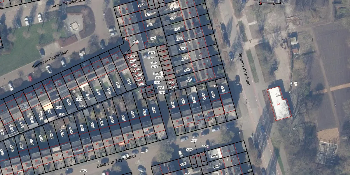 Gebruik de zoekbalk of klik op een perceel om informatie over het perceel te bekijken.