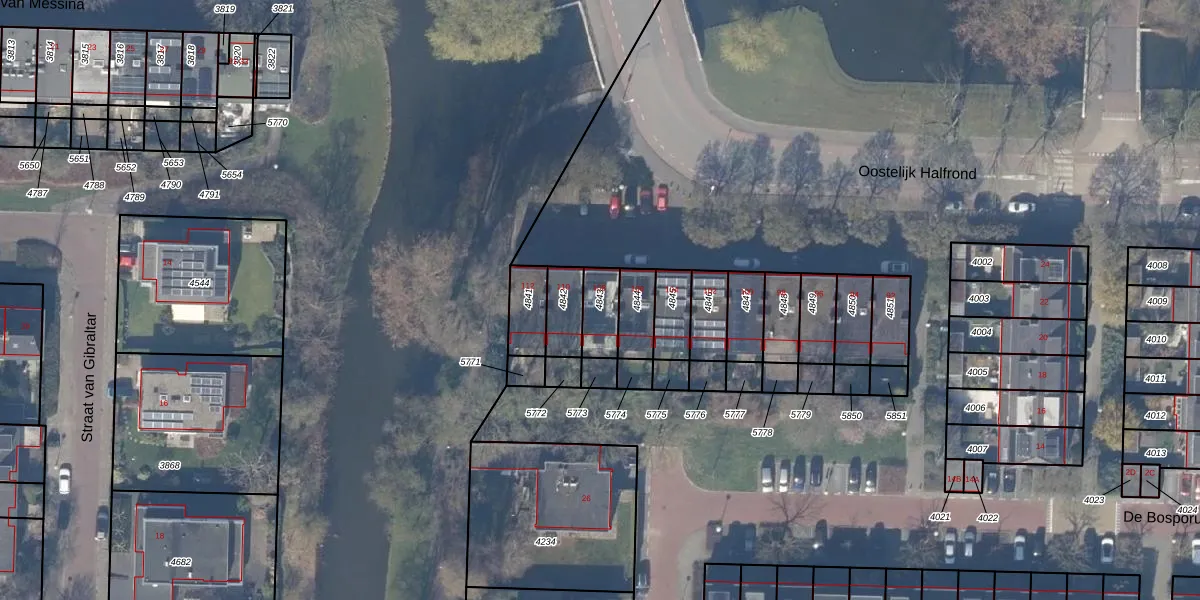 Gebruik de zoekbalk of klik op een perceel om informatie over het perceel te bekijken.