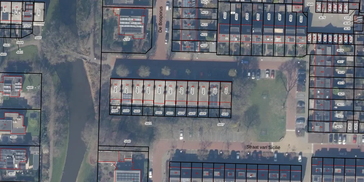 Gebruik de zoekbalk of klik op een perceel om informatie over het perceel te bekijken.