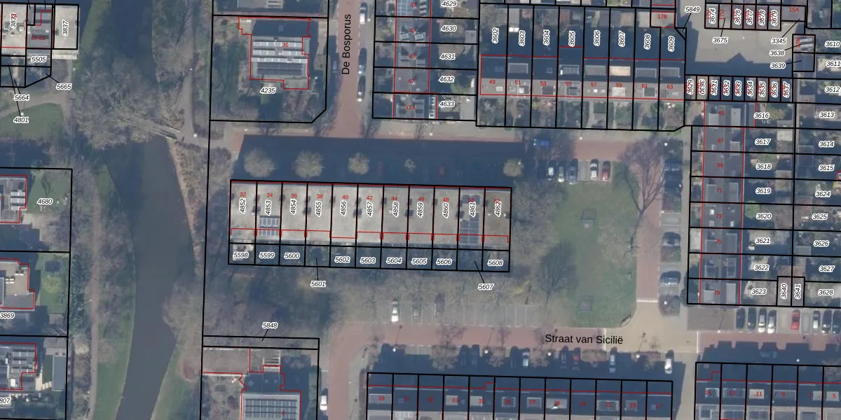Gebruik de zoekbalk of klik op een perceel om informatie over het perceel te bekijken.